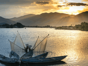 Fiberglass boat L 13′-6”W 5′ Rubber fender Set of rolex Set of oars Three Hooks Suitable for fishing, hunting, recreation, rescue operation.